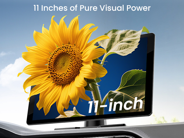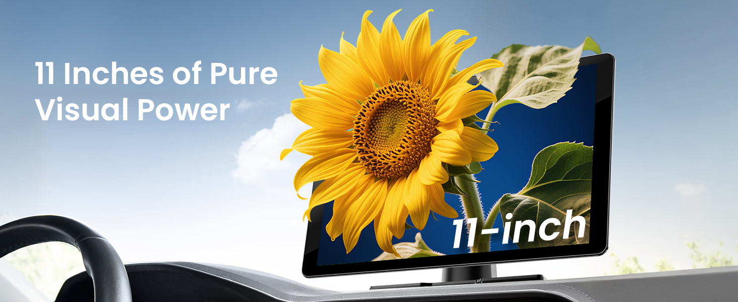 11" Extra Large Wireless Apple CarPlay Screen for Car – Ultra-Slim 0.16 Inch Touchscreen Car Stereo with Android Auto, 4K Dash Cam, 1080p Backup Camera, GPS, Mirror Link, Voice Control