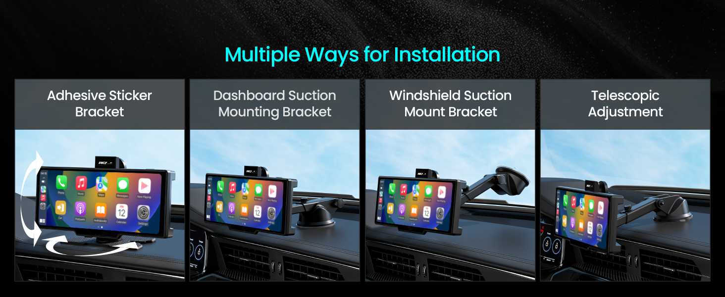 - Working mode: CarPlay, AirPlay, Android Auto, Miracast (for Android), BT Music, Dash Cam, USB Disk Playback